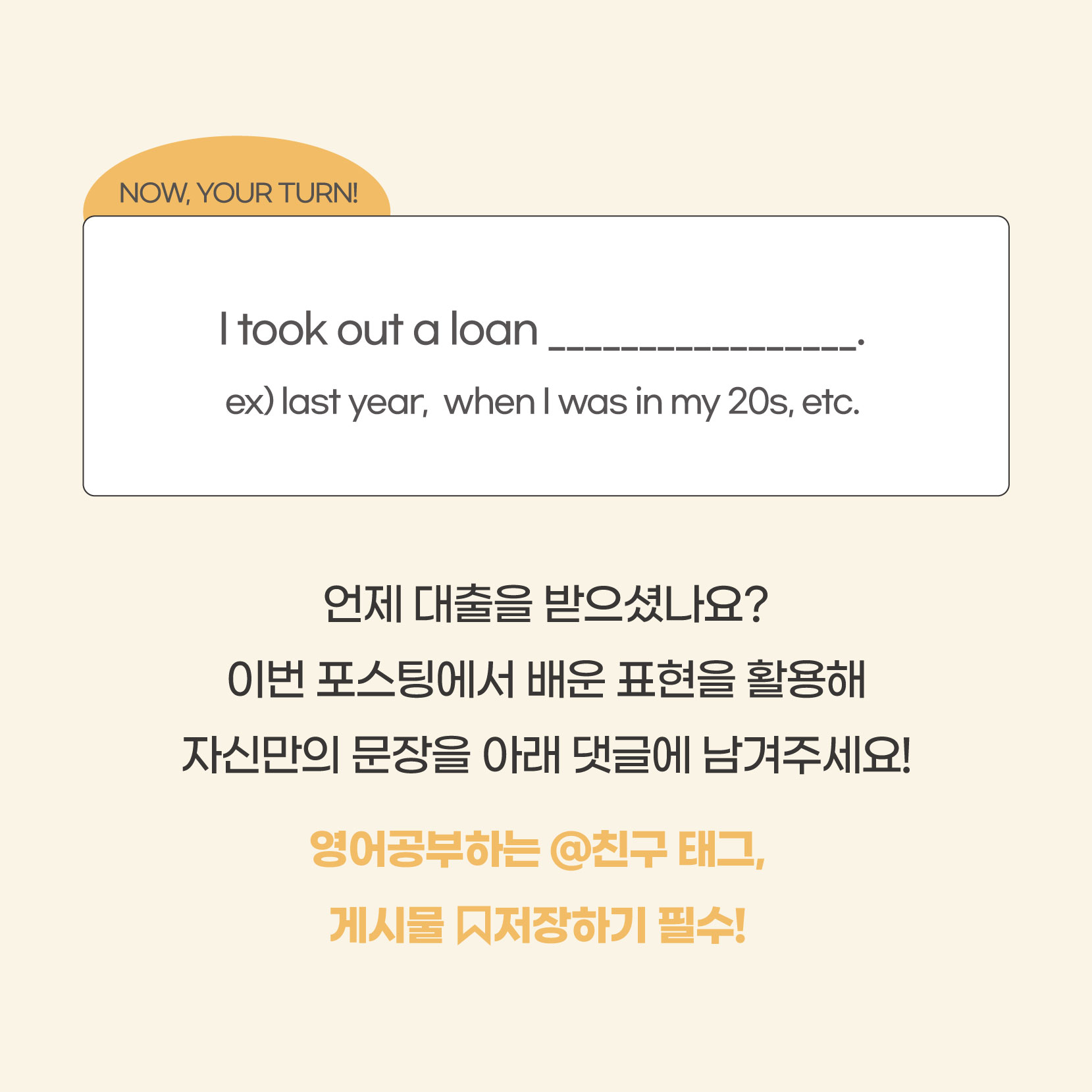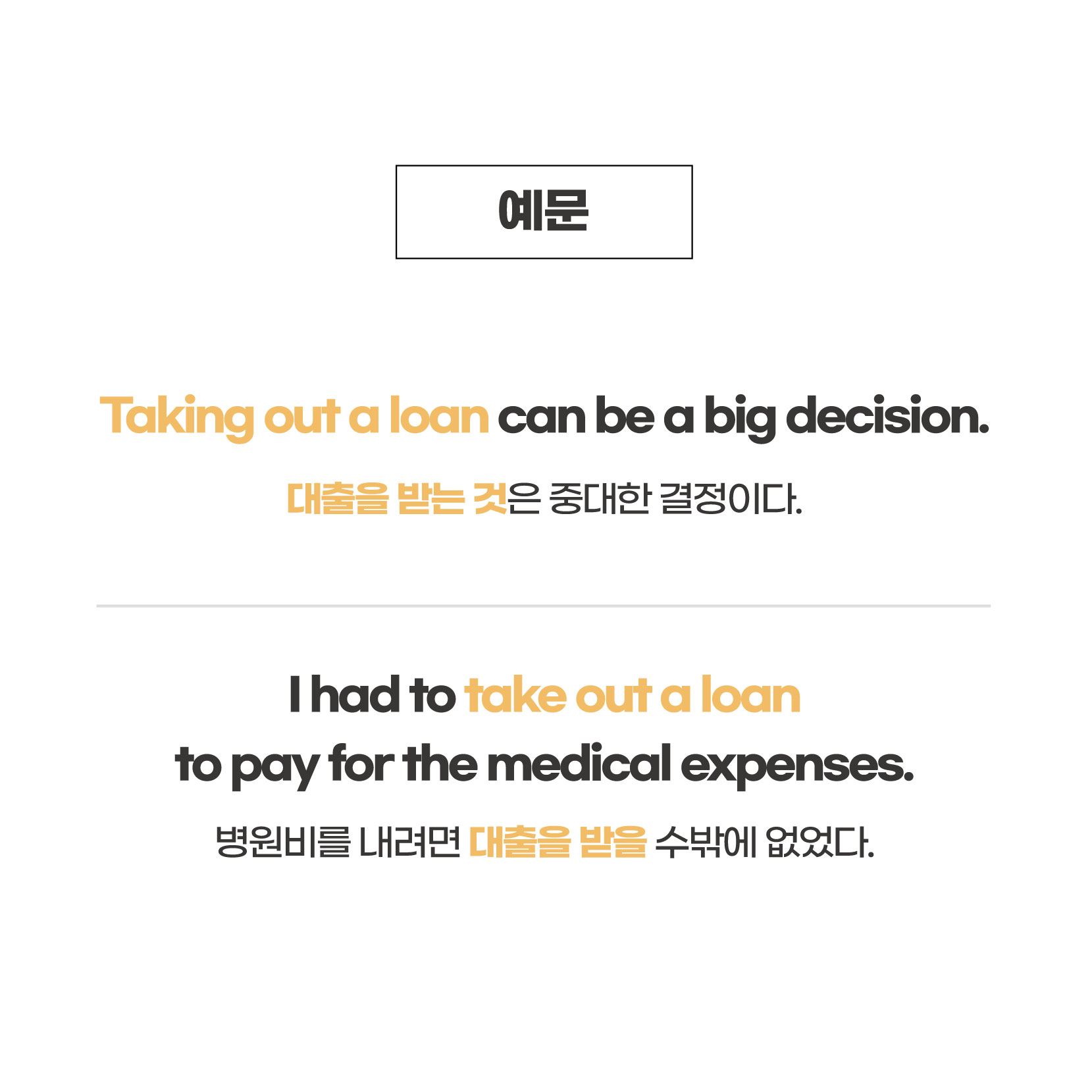 대출을 받을 땐 'take out a loan'를 떠올려보세요!