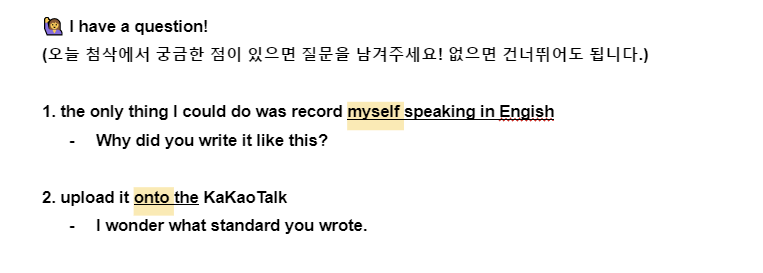 ▼ 첨삭에 대한 실제 질문 ▼