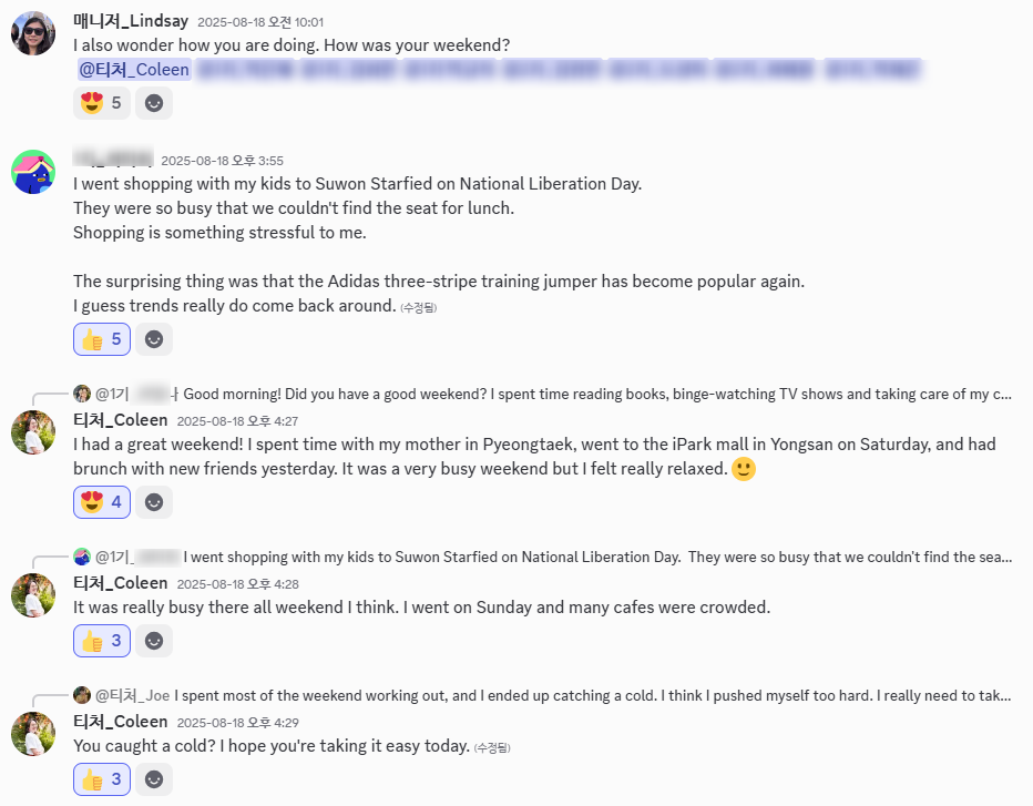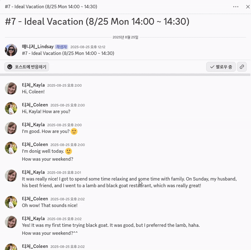 100% ์์ด๋ก ์ํตํ๋ ๊ณต๊ฐ์ด์์. ์๊ฐ๋ง ์ ํ๋ฉด ์ธ์ ๋ ์์ด๋ก ๋ํํ ์ ์์ด์.