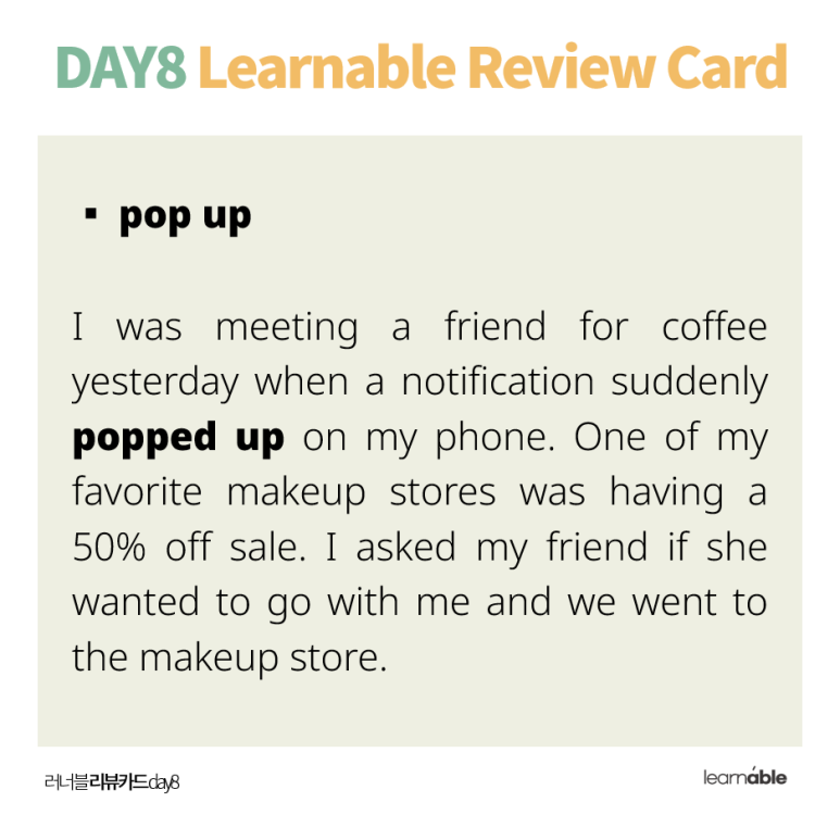 리뷰 카드로 방금 함께 봤던 'pop up'을 다른 맥락에서 만나보세요.